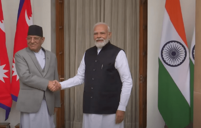 प्रधानमन्त्री पुष्पकमल दाहाल र भारतीय प्रधानमन्त्री मोदीबीच भेटवार्ता